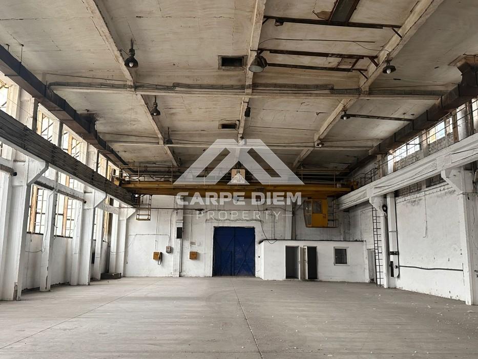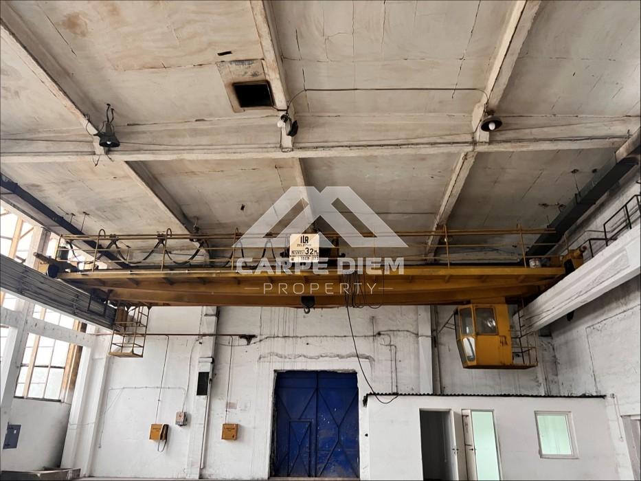 The warehouse includes a built-in crane, two offices, and a restroom. Parking spaces are available around the facility, and the space is available for immediate occupancy.