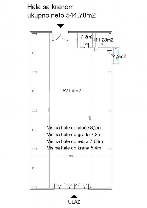 The 544.78 m² warehouse is functionally designed for storage and industrial use. It features two entrances and truck access, providing smooth handling of goods.